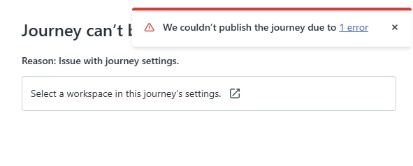 We just had the new Journeys module onboarded to our Helpdesk. I created a Sandbox duplicate of our production environment and began setting up the Journey. When I go to publish it I keep getting an error message saying that I need to assign a Workspace for the Journey. I select the HR Workspace and click Save…. and nothing happens. I click Save over and over and nothing happens.