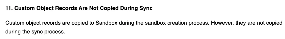 But that is not what is happening in our sandbox. None of the custom object records are copied to sandbox. only the custom object configuration is copied.