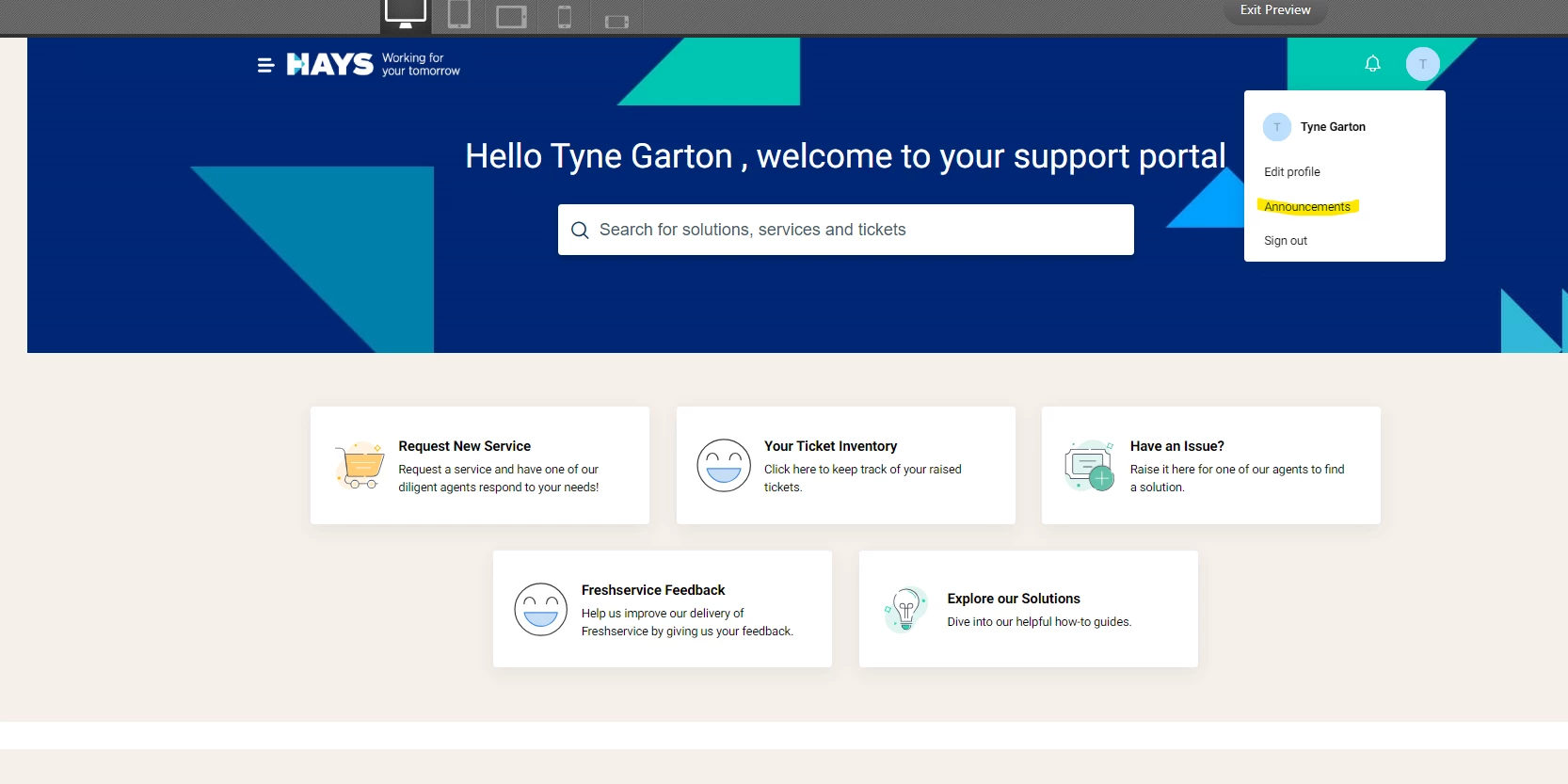 Hi, I am currently re-designing our requester portal and I’m trying to find a way to pull the Announcements feature through to the front page (the same way it presents in the the default portal). At the moment it’s only visible under the user icon (see attached screenshots), is there a way to achieve this using code? Or will it pull through once the portal has been re-published? TIA!