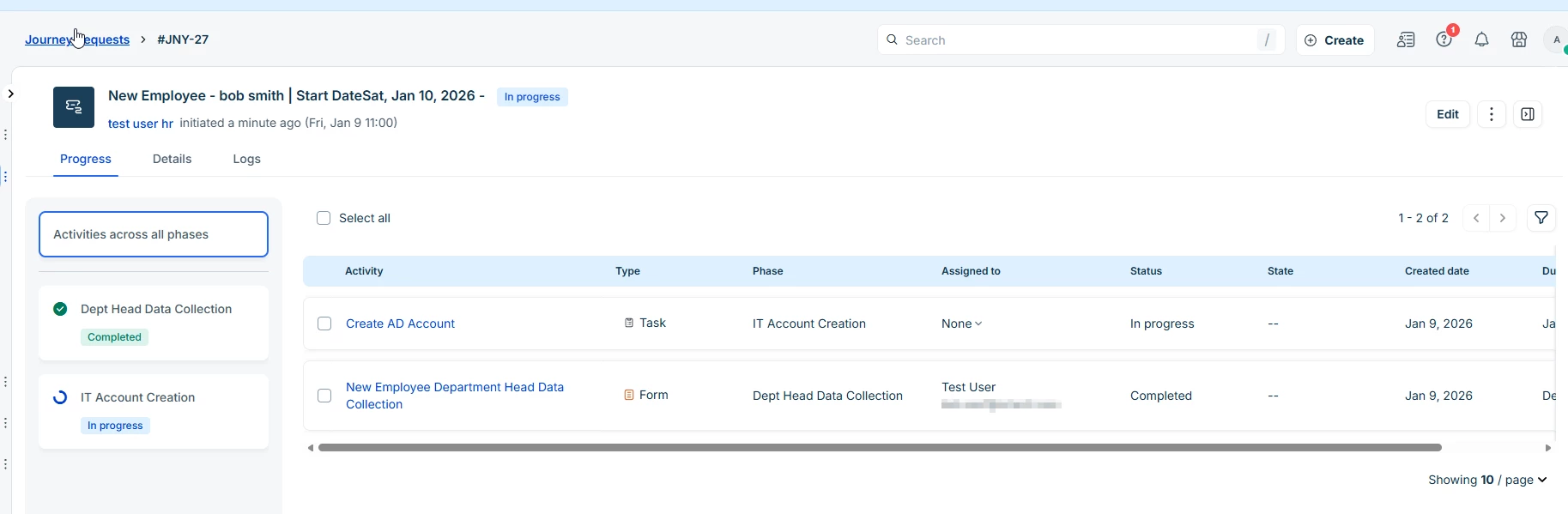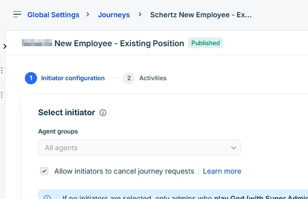 2. Select the “Request For” field in the Initiator Configuration section of the Journey