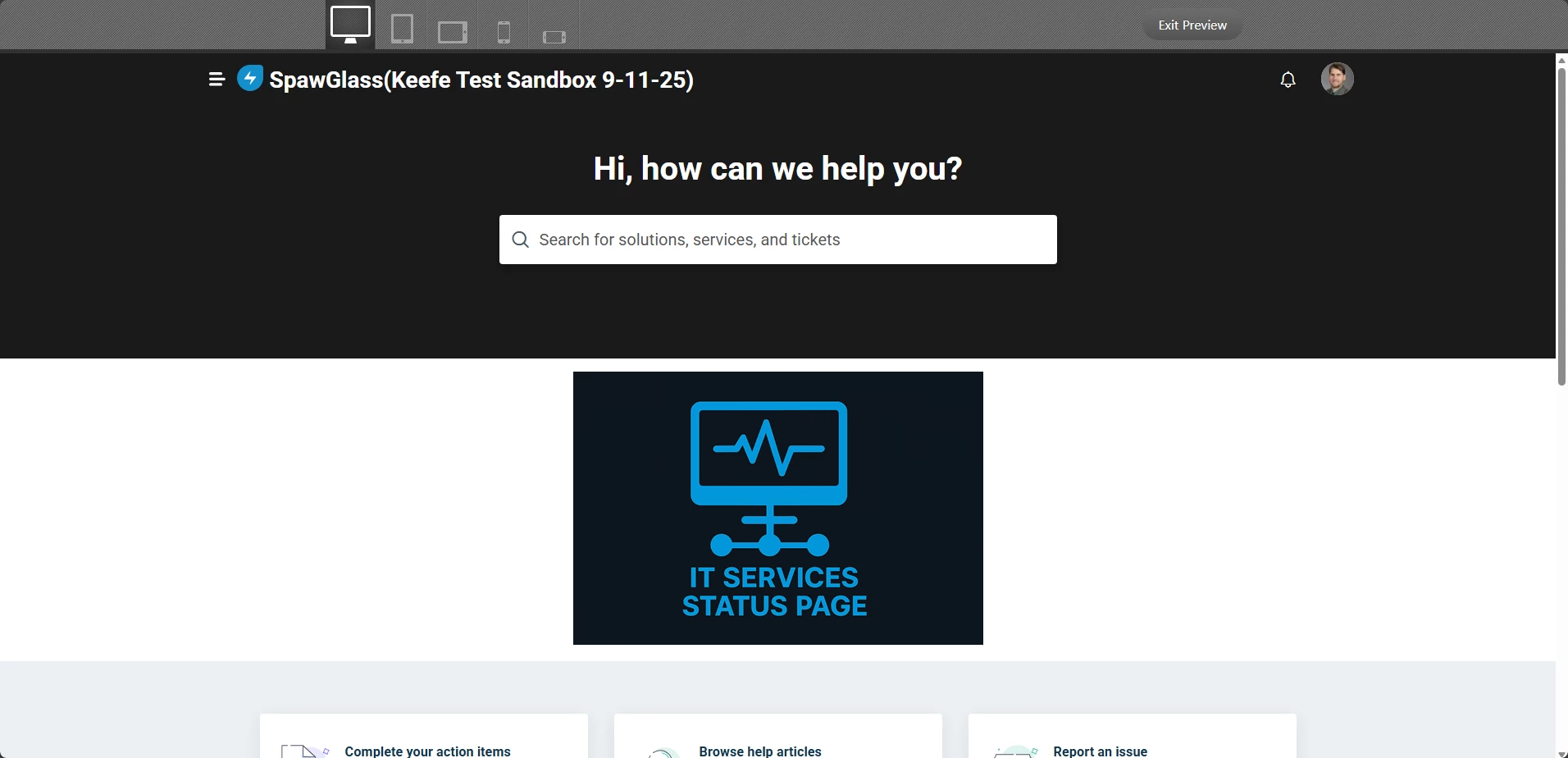 Are there any widgets or steps on how i can make the status page visible when staff access the self service portal?