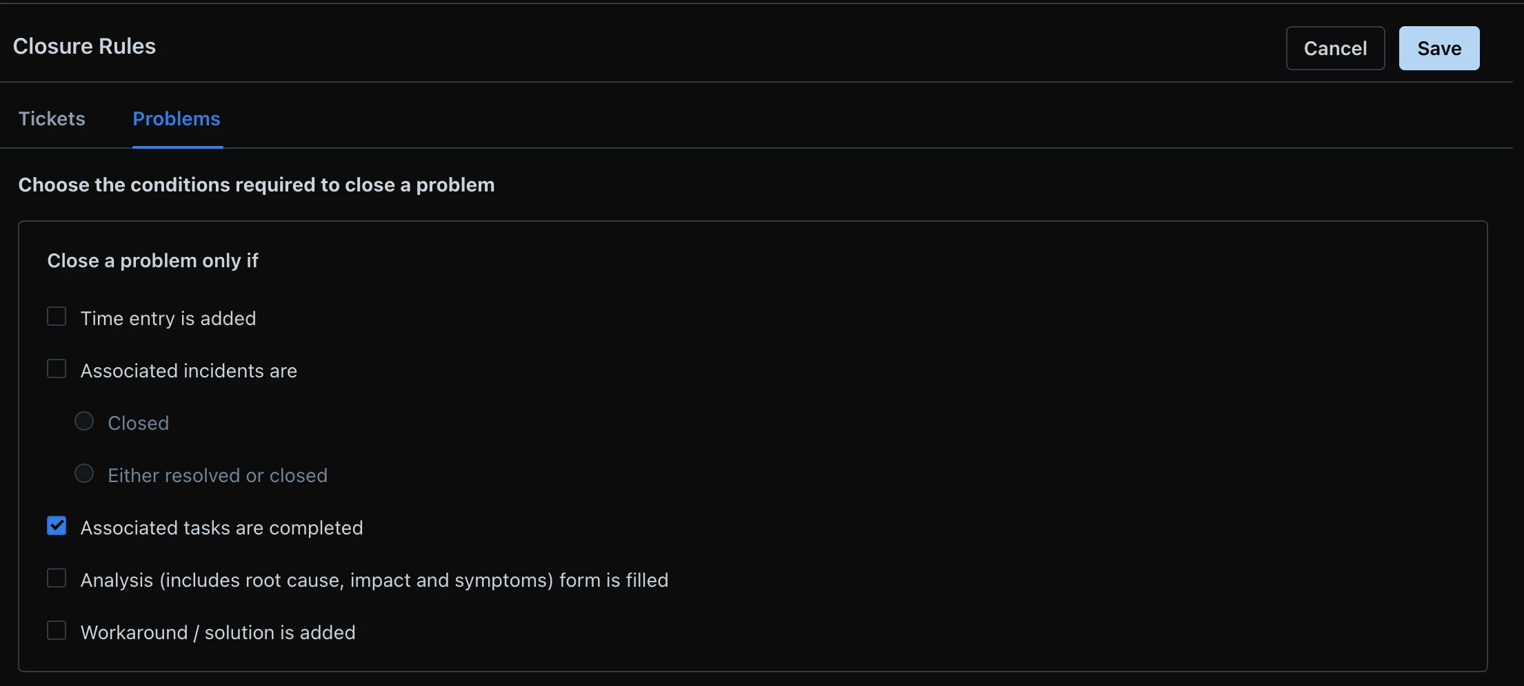 i have to close the incidents by hand, after this i can close the “problem” - how can i fix this