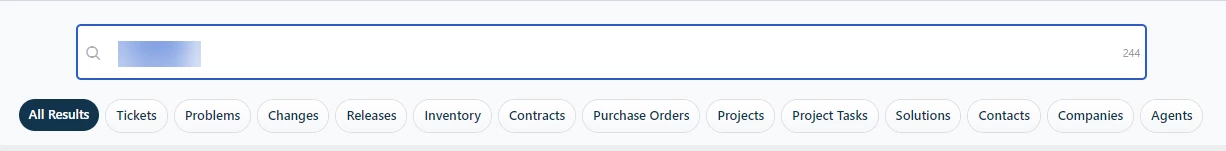 We are just starting to use FreshService to gather alerts from several disparate applications - However, I noticed during my normal utilization that there is no way to search an alert using the bar at the top of the FreshService page. Normally, when you put a search term in there and hit enter, you are met with a second screen where you can use the bubbles to filter by the specific type of item you are attempting to filter - however, Alerts aren’t in that list.
