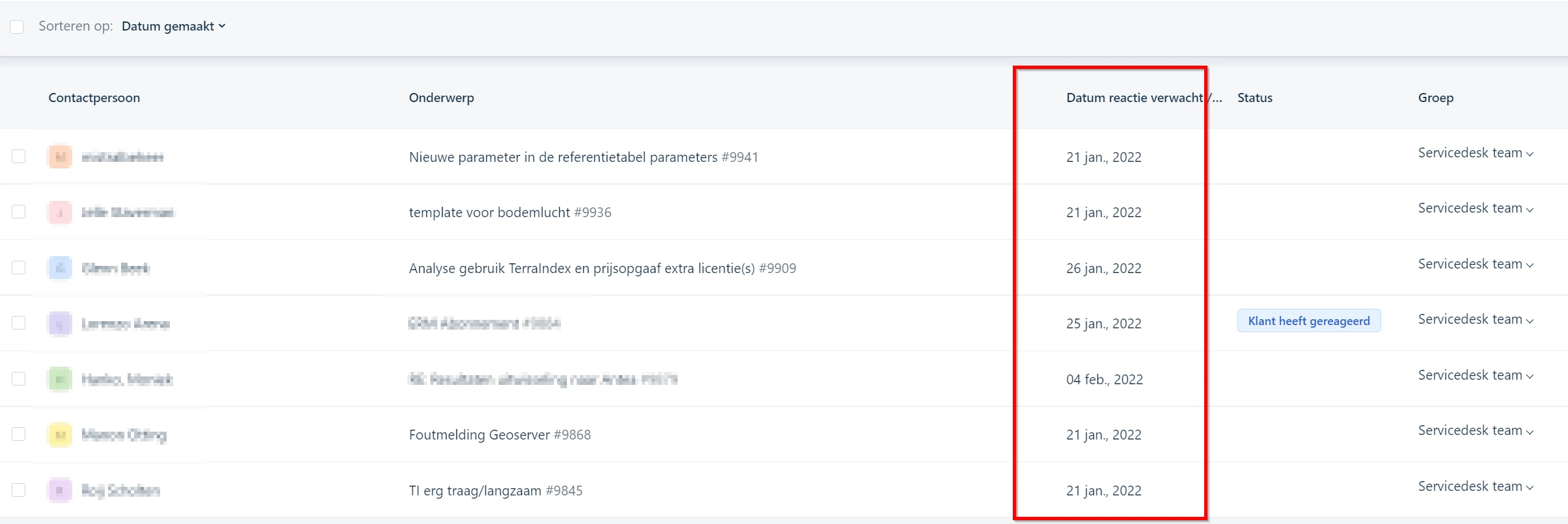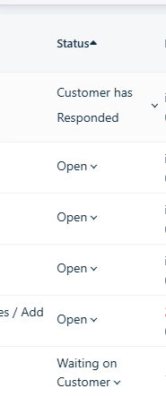 On the tickets table view, you can only sort the tickets on a few columns, like date created, priority and status.