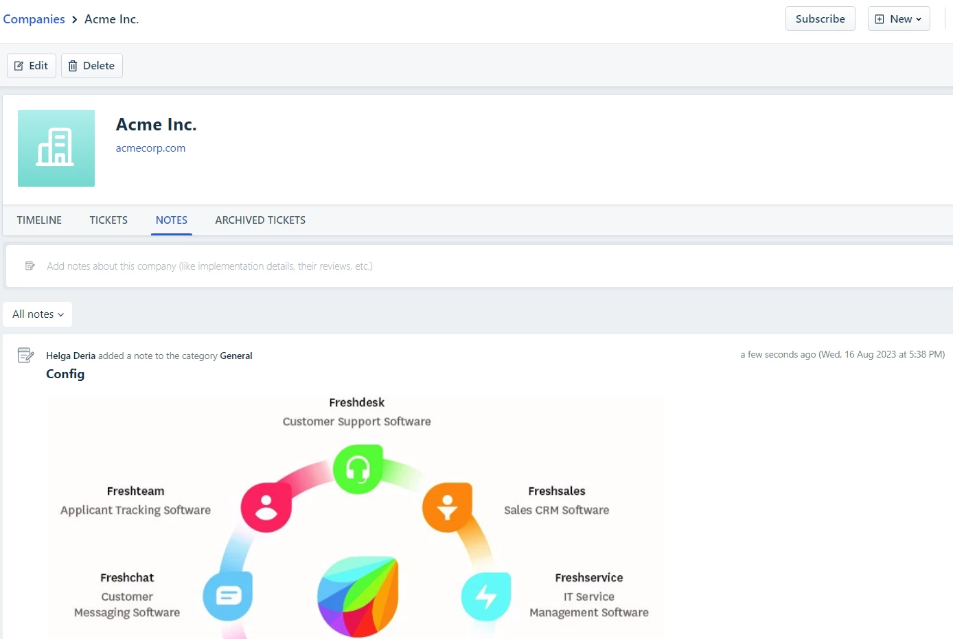 I would like to upload images for a contact or company. This is not their profile image. For example, screenshots of their config files for our product. For that matter, it’d be nice to include images in a ticket.