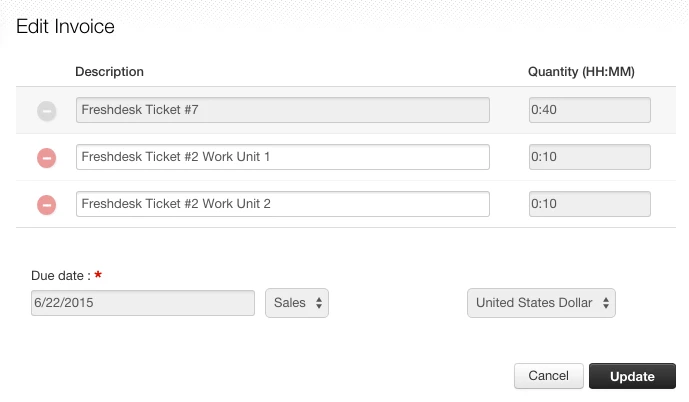 - Time - as there are various billable rates for different types of work Freshdesk would need to look up the different service rates so these could be applied to each individual task performed on a ticket.
