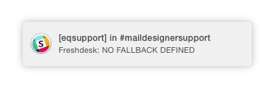 Been playing around with it and it works alright – except everyone keeps getting a weird empty push notification from the Slack Mac client that just reads "Freshdesk: NO FALLBACK DEFINED"