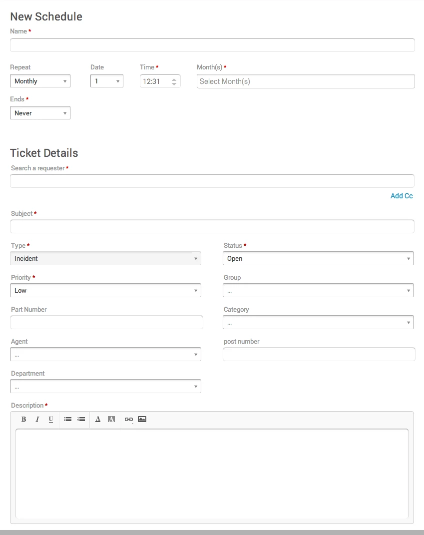 1. Recurring tickets: If I am a managed services provider, there are routine tasks that I must complete on a daily/weekly/monthly/yearly basis. It would be great to setup recurring tasks for various clients so I don't have to manually create them.