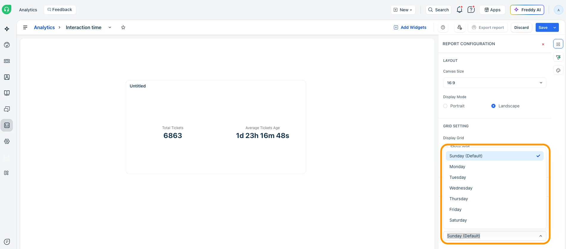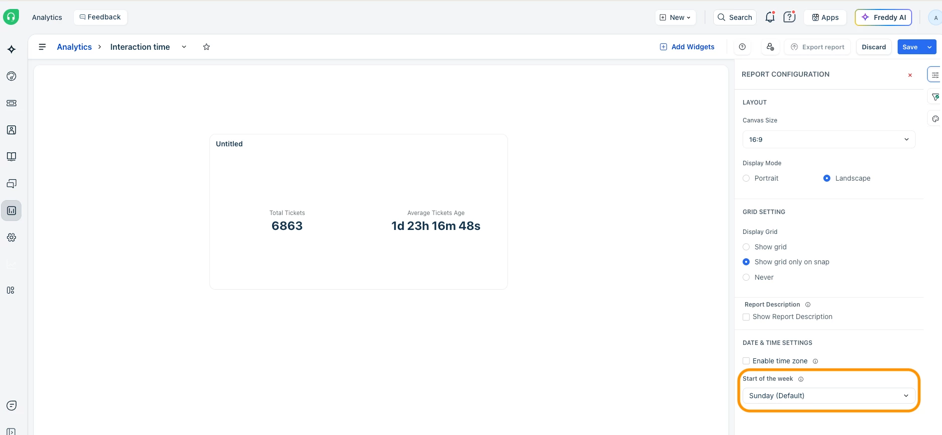 Freshdesk Analytics Group By Week feature breaks down metrics and trends where the week starts on a Sunday.