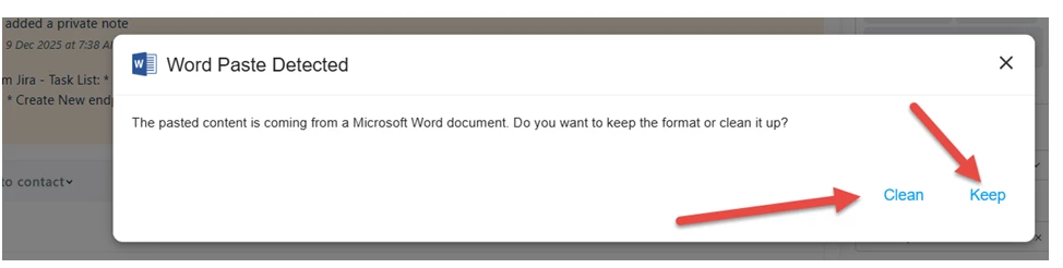 When pasting text into the ticket, I get this prompt: