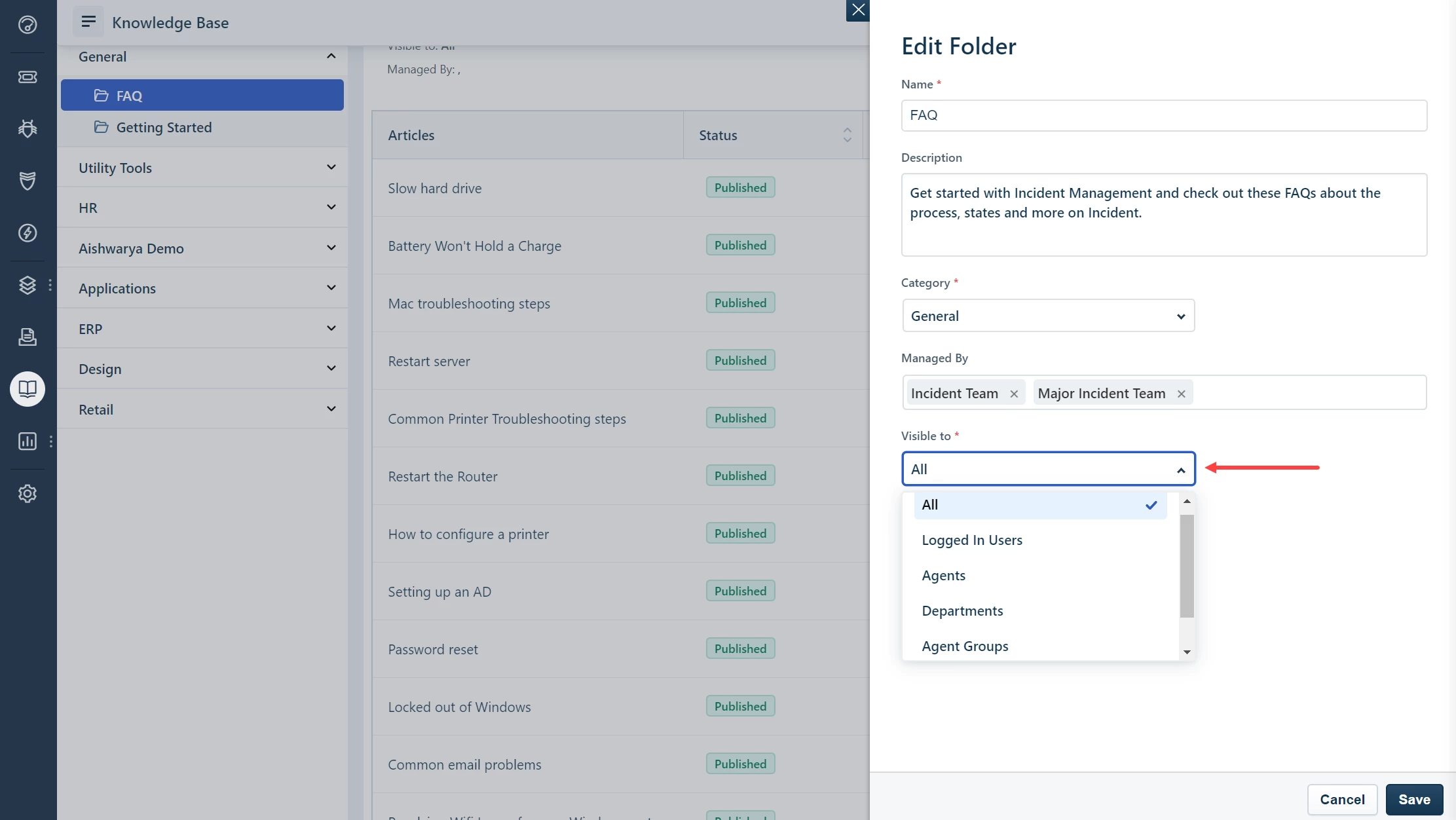 How do I make it so the knowledge base is only for agents. We don't want it for customers.